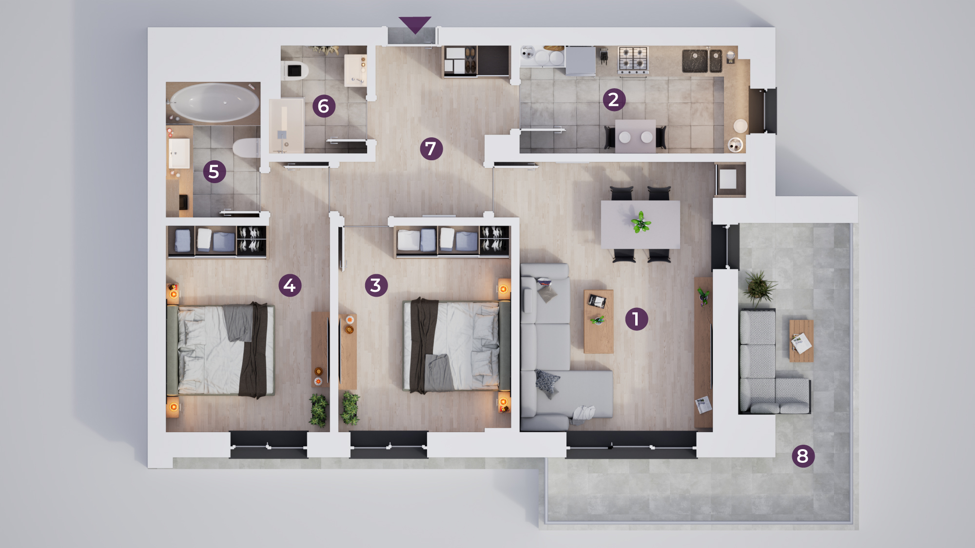 Imaginile și soluția de mobilare sunt cu titlu de prezentare și pot suferi modificări