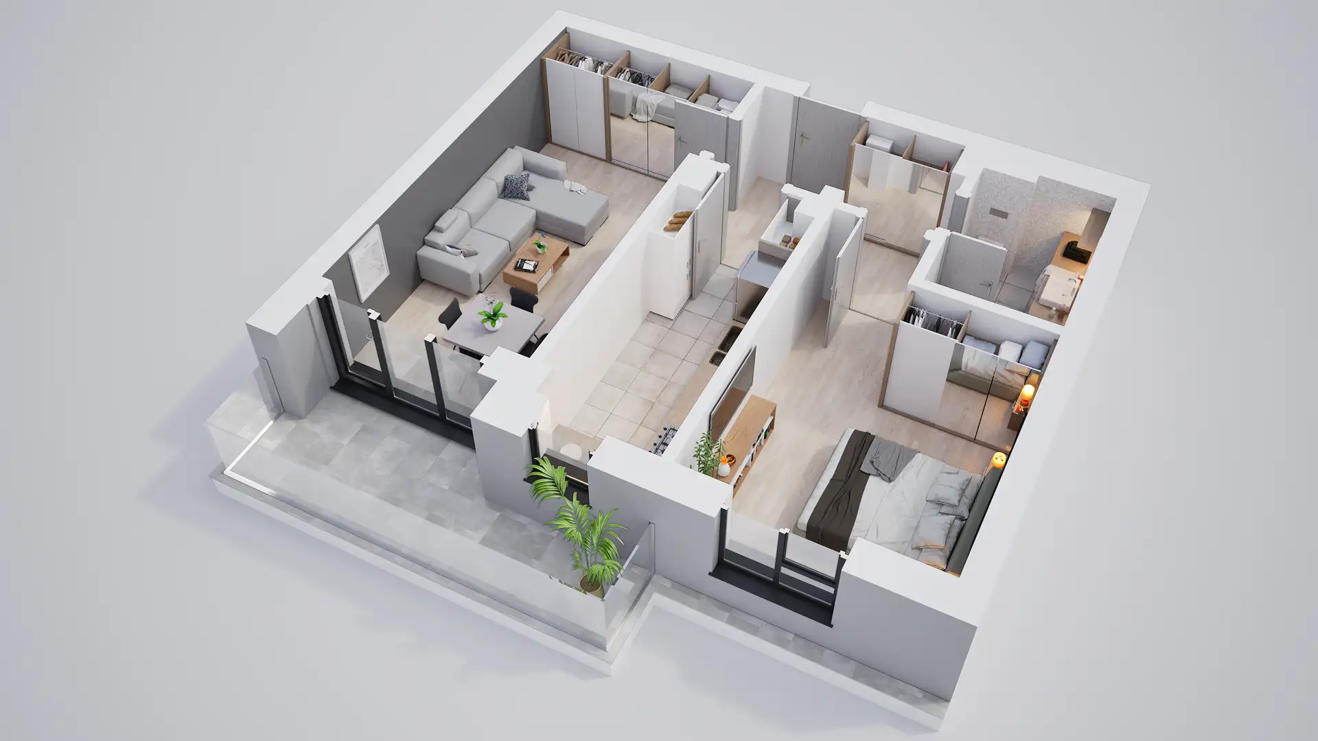 • Terase/Balcoane cu parapet din sticlă securizată, placate cu gresie;