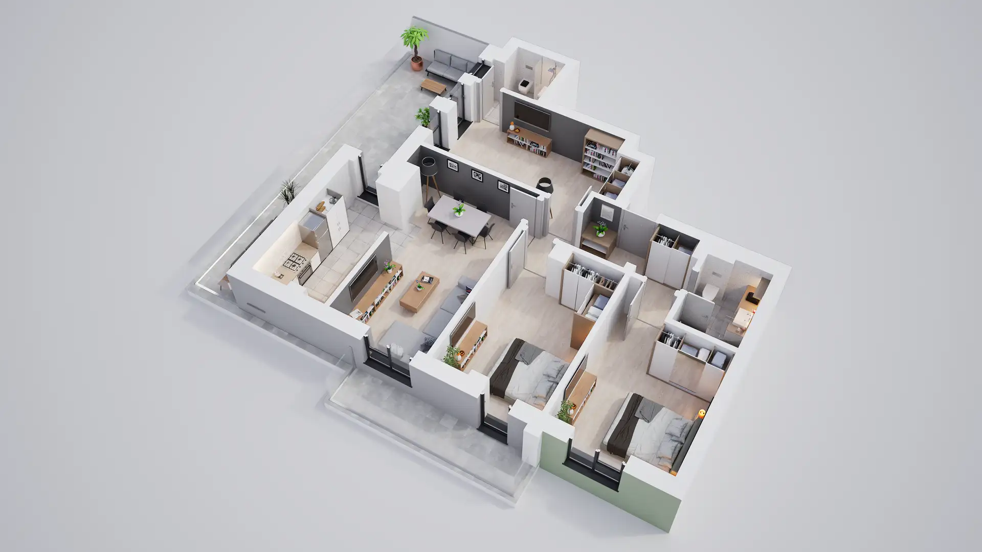 • Terase/Balcoane cu parapet din sticlă securizată, placate cu gresie;
